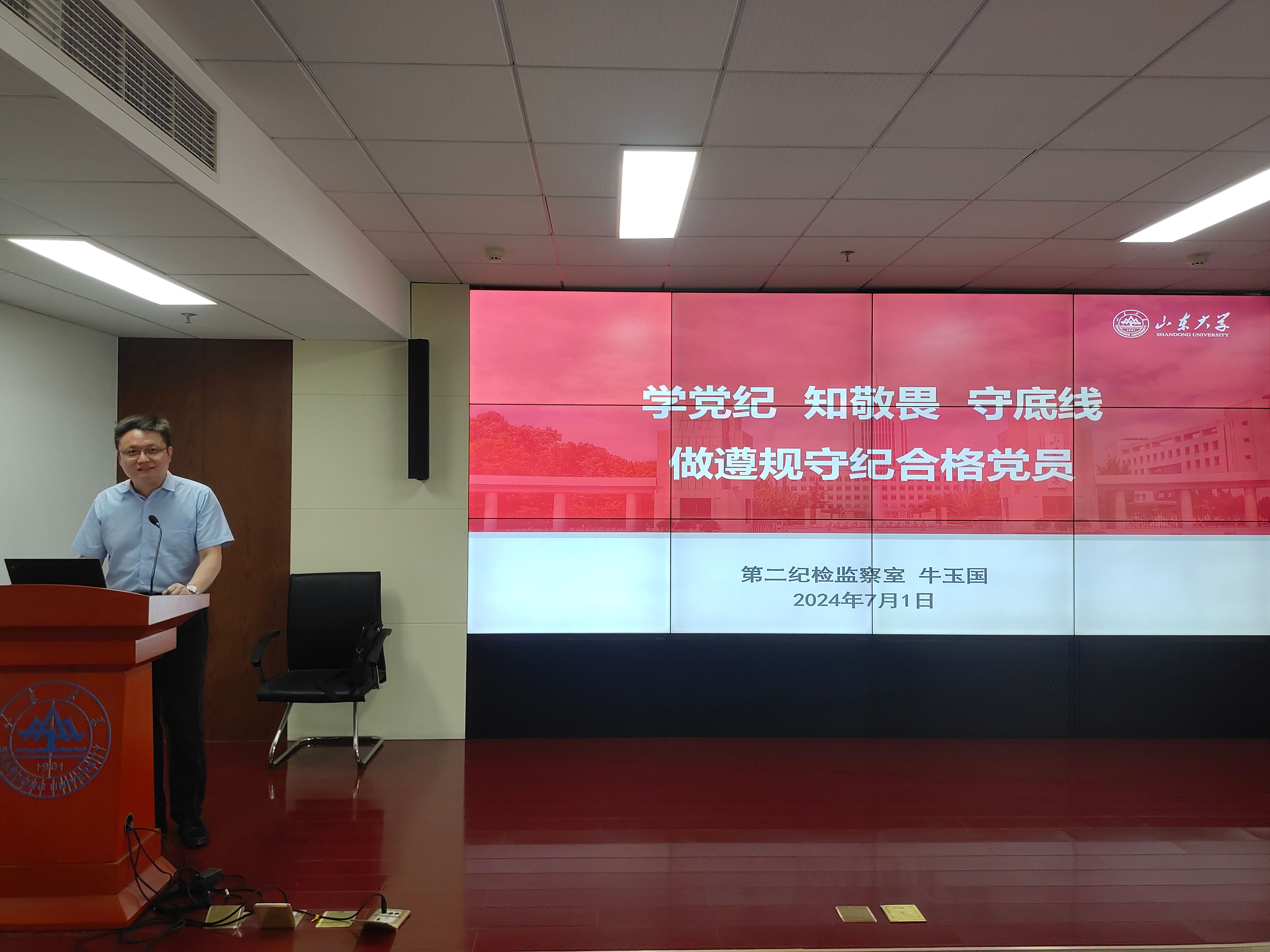 7月1日,beat365唯一官方网站在千佛山校区创新大厦1103报告厅举行党纪学习教育专题报告会。学校纪检监察机构第二纪检监察室主任牛玉国作了题为《学党纪 知敬畏 守底线 做遵规守纪合格党员》的报告。