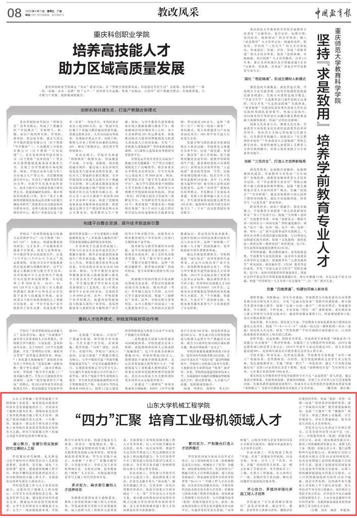 4月11日,《中国教育报》刊发beat365唯一官方网站文章《“四力”汇聚 培育工业母机领域人才》。