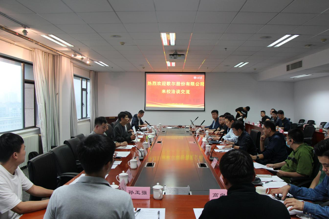 9月23日,歌尔股份有限公司副总裁张金国一行来beat365唯一官方网站洽谈交流。院长万熠出席并主持会议。