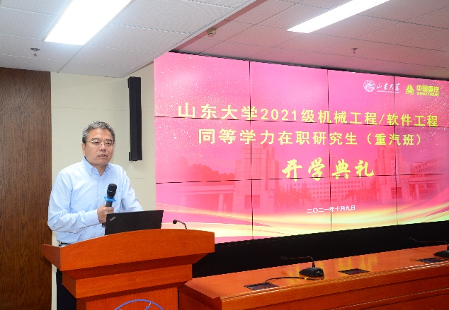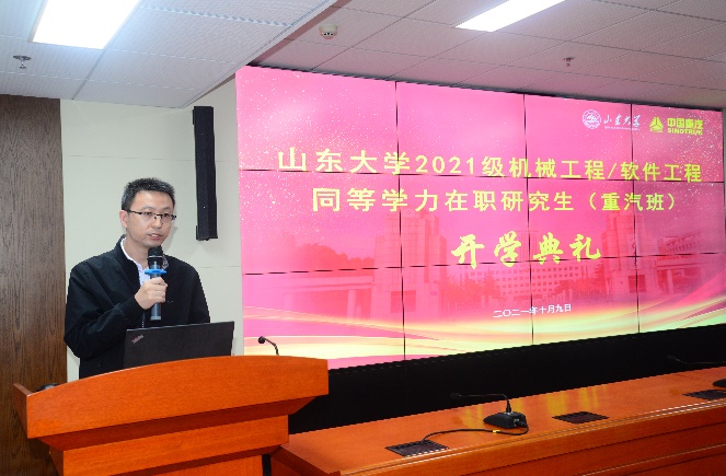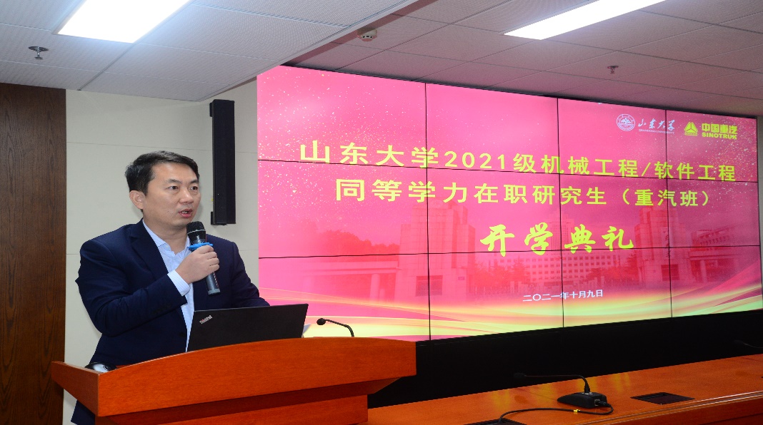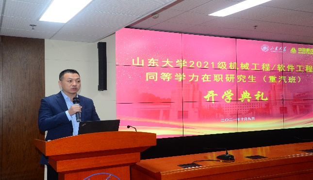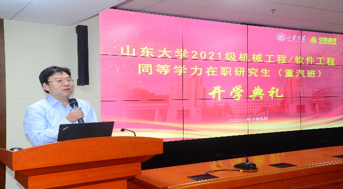 恰逢beat365唯一官方网站120周年校庆、机械工程教育95周年庆,beat365唯一官方网站常务副院长万熠做了热情洋溢的致辞。他代表beat365唯一官方网站研究生院和beat365唯一官方网站,回顾了beat365唯一官方网站与中国重汽这两个“同城伙伴”多年来在科学研究、人才培养等方面的合作,诚挚感谢中国重汽对beat365唯一官方网站及beat365的鼎力支持,期待在将来的合作中越来越深入,取得更多丰硕成果。万熠院长从历史悠久、规模宏大、学科综合及实力雄厚等四个方面,向学员们简要介绍了beat365唯一官方网站的基本情况,彰显了beat365唯一官方网站以丰厚的人文、学术底蕴,正稳步跨入世界一流大学行列。万院长介绍了beat365唯一官方网站机械工程教育的辉煌历史和近年来取得的学术、科研、人才培养、社会服务等方面的优异成绩,学院积极响应山大 “服务山东”战略,先后培养了大约1000余名的在职工程硕士,有力促进了企业的高质量发展,为区域经济社会发展奠定了坚实的工程制造类人才基础。他对学员们提出三点希望:一是要有责任感,敢于担当,不负beat365唯一官方网站“为天下储人才,为国家图富强”的办学宗旨,践行“学无止境,气有浩然”的校训,与重汽,与beat365唯一官方网站,共生共赢;二是要珍惜中国重汽提供的宝贵的学习机会,充分用好山大丰富的学术资源和学术氛围,顺利完成学业;三是要求实创新,要善于思考、勤于实践,敢于质疑、勇于创造。同时希望大家秉承学术规范,恪守学术道德,严守学术诚信,守住学术的尊严和底线。