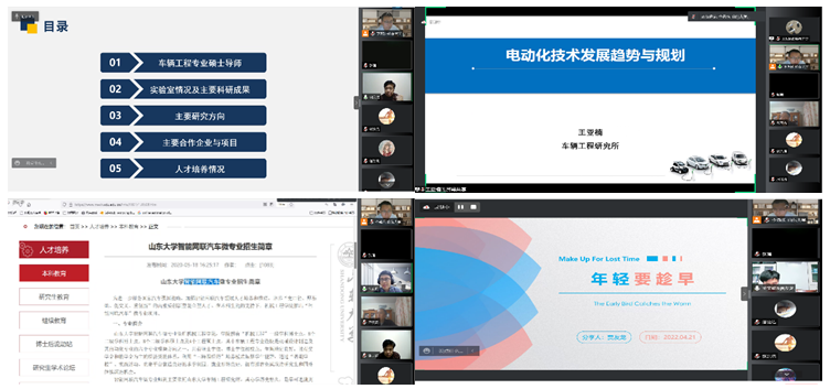 车辆工程研究所所长谢宗法教授、机械设计制造及自动化系副主任朱向前研究员、车辆工程研究所副所长王亚楠副教授分别做了专题报告,围绕培养科学精神、提高本科生专业能力、促进成长发展和塑造优秀品格等方面介绍了车辆工程专业研究方向、师资队伍、科研成果、人才培养方案和学生就业等情况,介绍了车辆电动化技术的发展前沿与趋势,引导学生树立创新志向。优秀毕业生代表2020届贾友龙和2021届窦文政分别以“年轻要趁早”和“心有猛虎,细嗅蔷薇”为题,结合自身在课程学习、学生工作、科技竞赛以及科研工作等方面的经历进行了经验分享。活动最后,研究所老师们就同学们提出的问题进行了互动交流。本科2018级、2019级、2020级车辆班团支部及21级各团支部同学积极参与了本次活动。