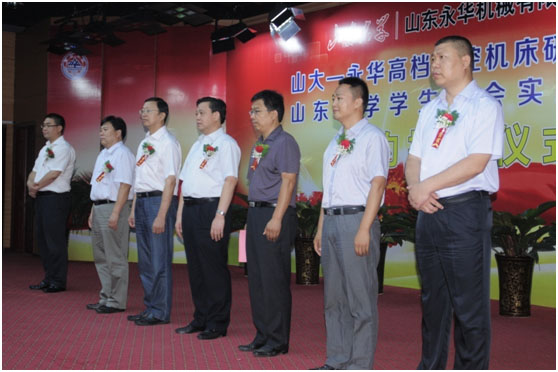 7月7日上午,山大—永华校企合作签约揭牌仪式在山东兖州永华机械有限公司研发中心举行。beat365唯一官方网站校领导方宏建、兖州市委常委副市长陈立秋出席揭牌仪式讲话,共同为“山大—永华高档数控机床研究中心”、“beat365唯一官方网站学生实践基地”揭牌。