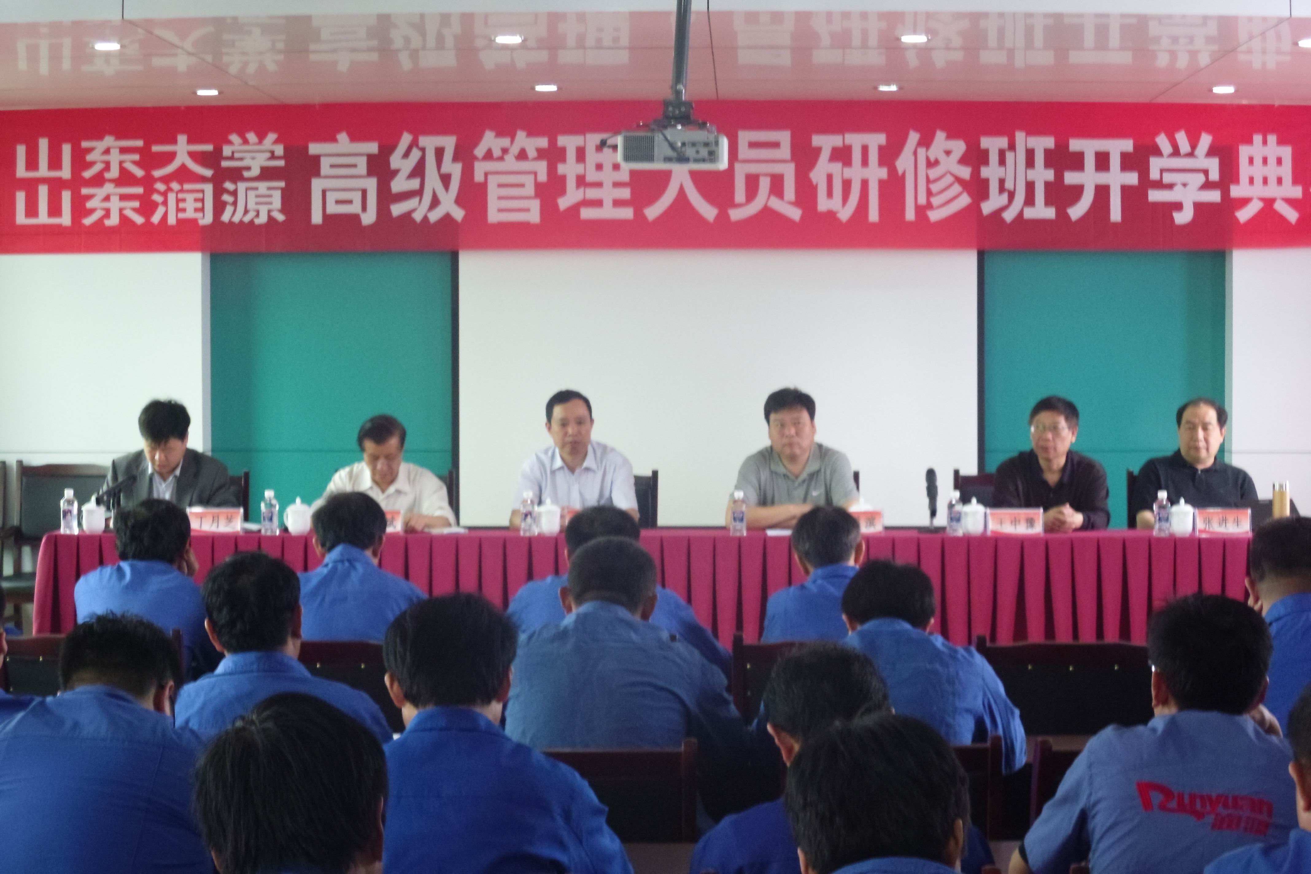 5月18日,beat365唯一官方网站山东润源公司高管研修班开班典礼在临清市山东润源实业有限公司会议室举行。beat365唯一官方网站党委书记仇道滨,临清市委组织部常务副部长张容元,山东润源实业有限公司董事长丁月芝及公司中层以上业务骨干50余人参加了开班典礼。开班典礼由聊城市政府原副秘书长、中国社会管理科学院特约研究员王洪斌主持。