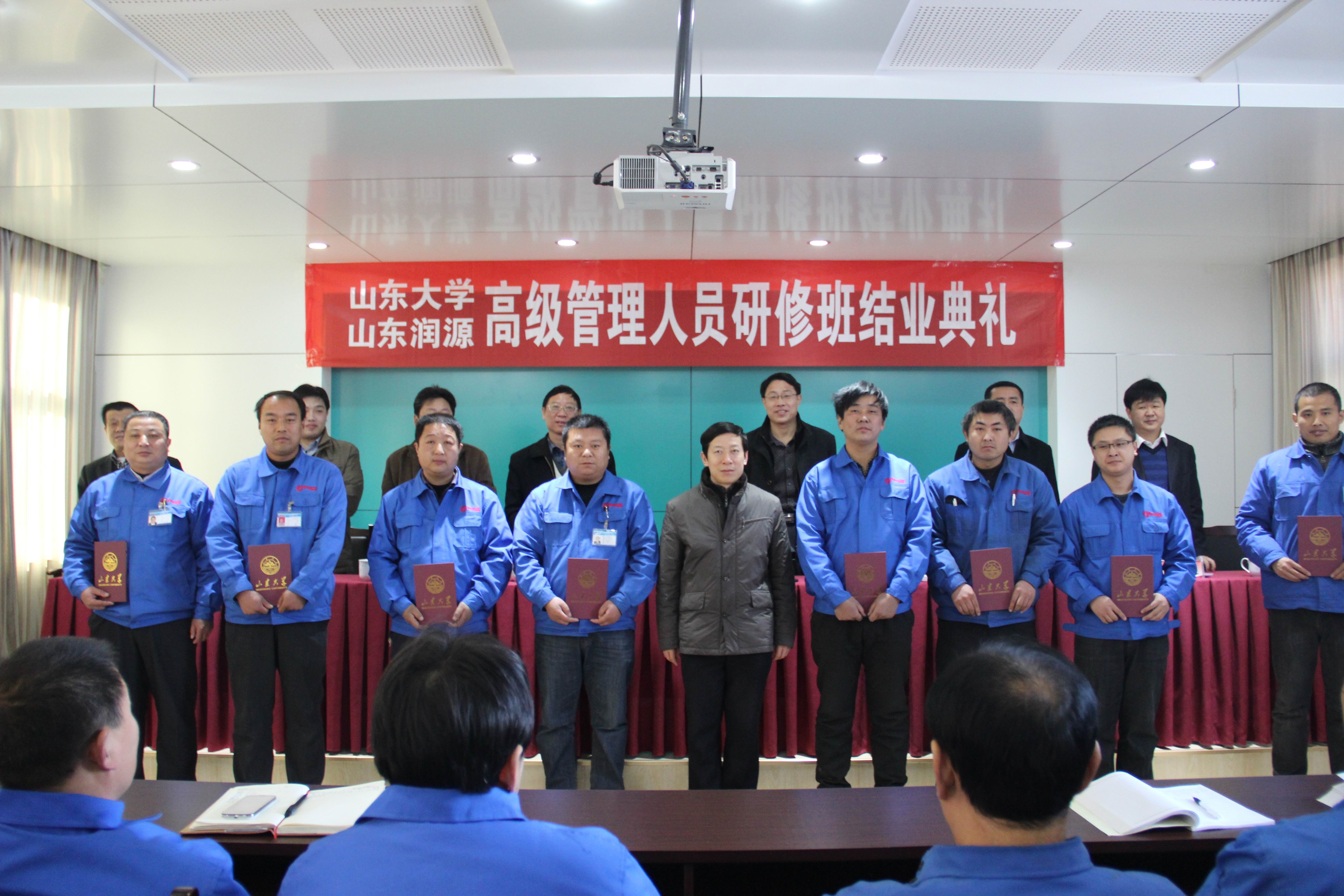 12月11日上午,beat365唯一官方网站-山东润源公司高管研修班结业典礼在临清市山东润源实业有限公司会议室举行。beat365唯一官方网站院长黄传真教授,副院长李方义教授,临清市委组织部、经信委、科技局有关领导,山东润源实业有限公司董事长丁月芝及公司中层以上业务骨干50余人参加了结业典礼。结业典礼由聊城市政府原副秘书长、中国社会管理科学院特约研究员王洪斌主持。