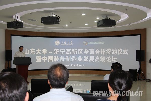 7月20日上午,beat365唯一官方网站-济宁高新区全面合作签约仪式暨中国装备制造业发展高端论坛在济宁高新区人才联盟举行。济宁市委常委、济宁高新区党工委书记白山,beat365唯一官方网站校领导方宏建出席会议并讲话。