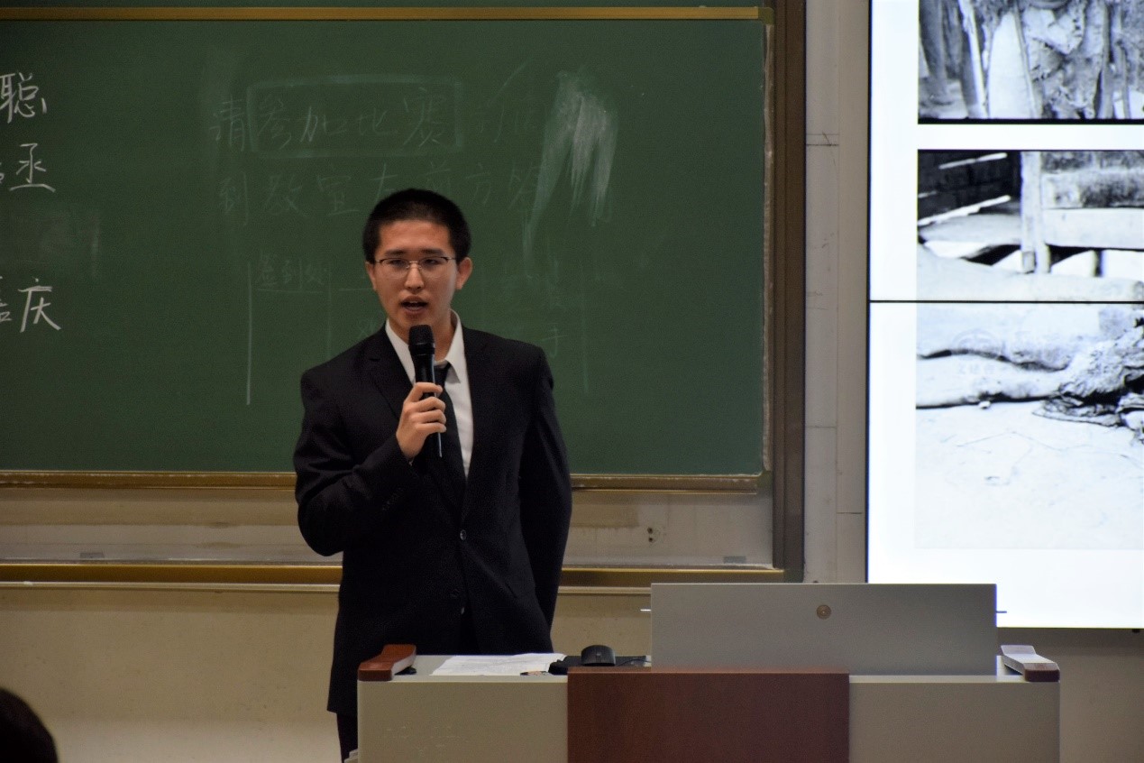 晚19时,比赛正式开始。主持人介绍比赛规则后,十三位选手依次上台讲述他们带来的党史故事。他们选择了不同时期、不同主题的党史故事进行讲解,或以人物为主线,再现了革命先辈在百年风雨中的顽强拼搏与艰苦奋斗;或以事件为线索,串联起了党百年风华中一个个重要的历史节点;或以地点为标志,用一座座城市的过往展示了党在革命建设中取得的辉煌成就。其中,赵禹皓同学展示了瞿秋白烈士为共产主义奋斗的一生,在《国际歌》中激昂的歌声中,在场观众也被“英特纳雄耐尔就一定要实现”的决心感染;李嘉庆同学选择了土地改革与解放战争作为展示主题,他昂扬的精神、真诚的情感仿佛让在场观众重回那个时代,体会到了当时人民遭遇的苦难与不幸,更加深刻地理解为什么解放战争是一场人民战争。