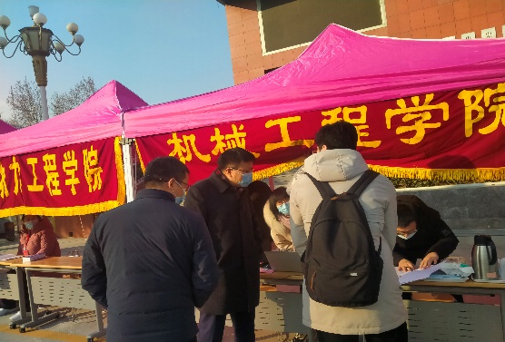 成立了研究生提前返校工作小组,详细制定研究生提前返校工作方案, 2月7日召开迎接研究生提前返校工作筹备会,建立返校研究生信息通讯录和微信群,发放返校报到流程及注意事项,分工协作做好迎接学生返校准备。2月8日,工作人员及学生志愿者(寒假留校学生)提前半小时到位,精心为返校学生做好手消、口罩、饮水杯等相关保障物资,进行健康码以及核酸检测报告审核,引导手机扫码报到和现场核酸检测等返校流程。学校党委书记郭新立、党委副书记王君松亲临学院迎接点视察慰问指导,学院院长万熠,党委书记刘杰、副书记滕玉军、副院长姚鹏在现场指导工作,迎接返校学生,学院老师和志愿者细致亲切地关怀和服务使返校学生感受到了回家的温馨。