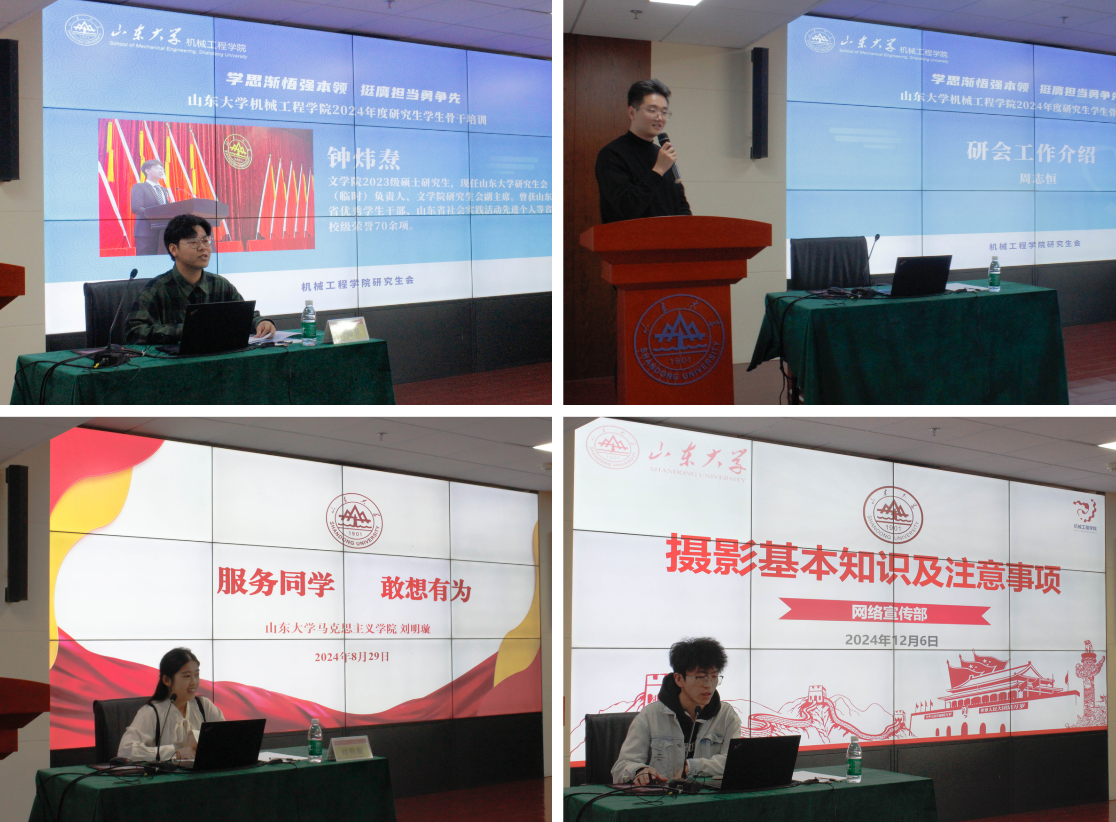 学院研究生会负责人周志恒介绍了研究生会的活动策划和执行情况;网络宣传部向大家讲解了摄影和编写新闻稿的工作要领;秘书处做了报销流程、志愿服务时长认定细则的讲解,为大家解决了日常工作中的实际困惑,并提供了明确的操作指南。