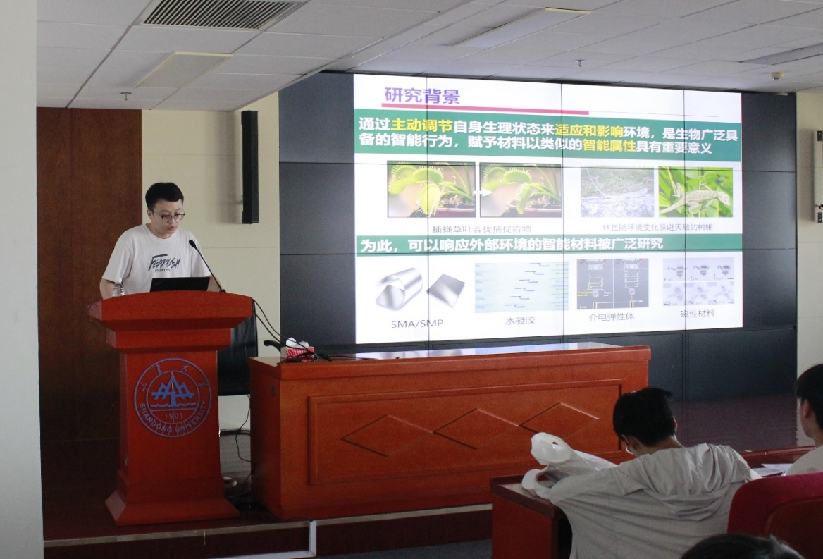 马晓源在报告中指出,传统材料的性能往往固定不变,而智能超材料则能通过结构设计对外界刺激(如力、热、电、磁等)做出动态响应,实现自适应变形、能量吸收或功能切换。然而,受限于当前技术水平,许多智能超材料的性能尚未得到充分发挥。为此,他选择多稳态壳结构作为研究载体,来探索智能超材料的应用方案。报告结束后,闫鹏教授对马晓源的研究进行了精彩点评,肯定了智能超材料的研究价值并指出了报告中的一些问题。在最后的问答环节,现场同学反响热烈,纷纷结合自己的专业方向踊跃提问。