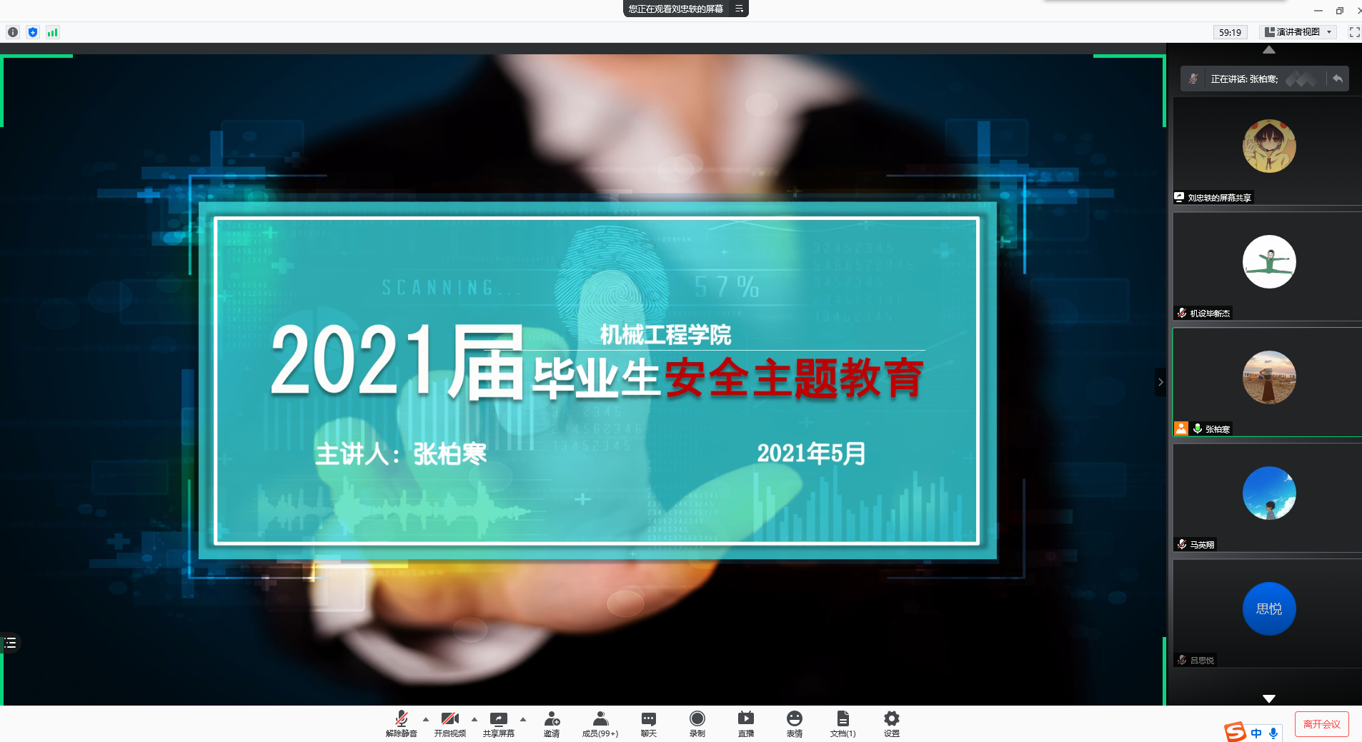 5月8日,beat365唯一官方网站开展了“毕业生安全主题教育”活动,学院团委副书记、毕业生辅导员张柏寒主讲,2021届全体毕业生参加本次活动。