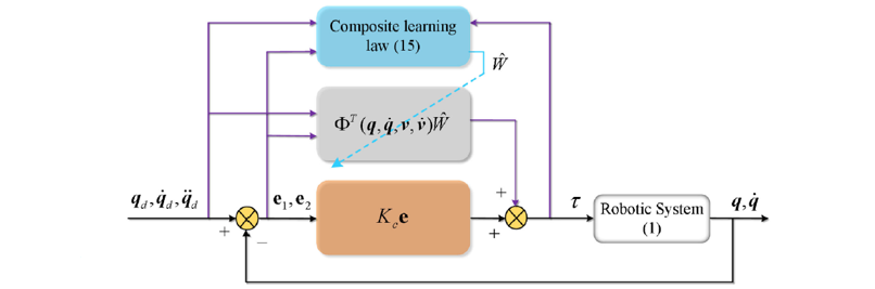 由于机器人系统存在复杂的非线性特性,系统中的未建模动态和外干扰会对高性能轨迹跟踪控制产生较大不利影响。在传统的机器人自适应控制方法中,多基于持续激励条件假设,导致控制结果较为保守,适用性受到限制。在该研究中,国凯课题组针对机器人高性能轨迹跟踪控制中的未知参数精确建模、辨识及补偿问题,提出了一种神经网络复合学习控制方法。针对系统未知参数进行在线复合自适应学习,通过历史数据和在线数据并联驱动未知参数实时更新,在interval-excitation条件下即可保证参数估计值收敛。针对复合学习过程中的变量替换问题,提出了分区神经网络控制结构,提高了非线性不确定项的学习精度,避免了对系统信号高阶导数项的需求,提高了闭环系统的鲁棒性。该工作证明了神经网络复合学习控制方法的有效性和优越性,为机器人高性能控制提供了新思路。