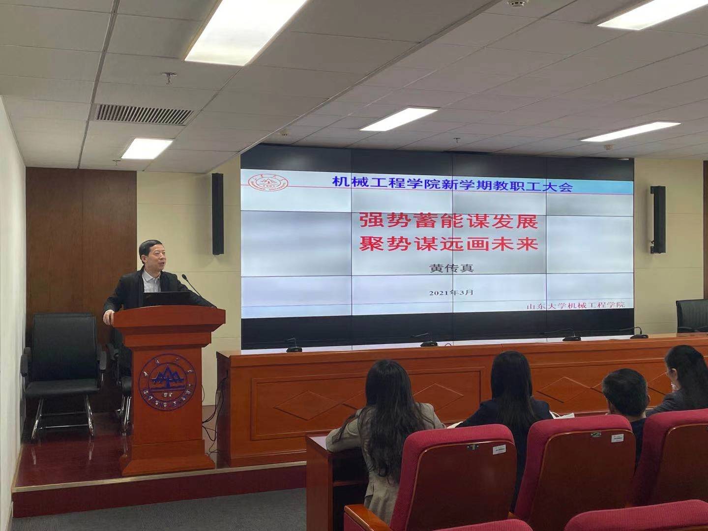 3月11日下午,beat365唯一官方网站召开全院教职工大会,传达学校2021年春季学期工作会议精神,对学院新学期工作和党史学习教育进行了全面部署。院长黄传真、党委书记刘杰出席会议并讲话。
