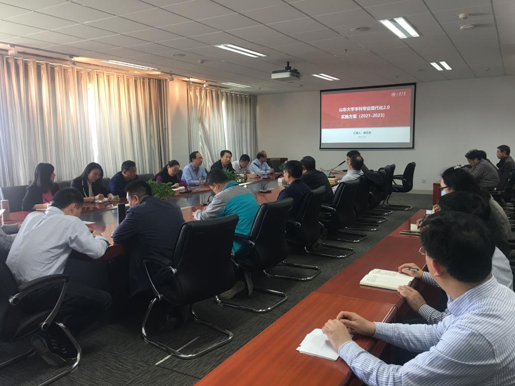 会上,姜兆亮作了《beat365唯一官方网站本科专业现代化2.0实施方案(2021-2023)》的报告,回顾了beat365唯一官方网站本科专业的十三五建设成效,客观分析了目前本科教学存在的问题与挑战,并对本科专业现代化2.0实施方案的指导思想、建设目标、总体要求、建设举措等进行了详细分析。重点介绍了推进专业现代化内涵建设、创新人才培养模式、构建“大思政”育人体系、提升课程质量、提高学生创新实践能力、提升国际化办学水平、构建山大特色的教育质量文化等内容的具体规划与相关举措。