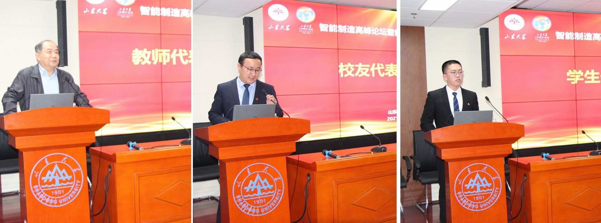 教师代表张进生教授、校友代表上海望书归工程技术有限公司董事长张凯、学生代表尹超凡分别发言,表达了对学院的祝福。