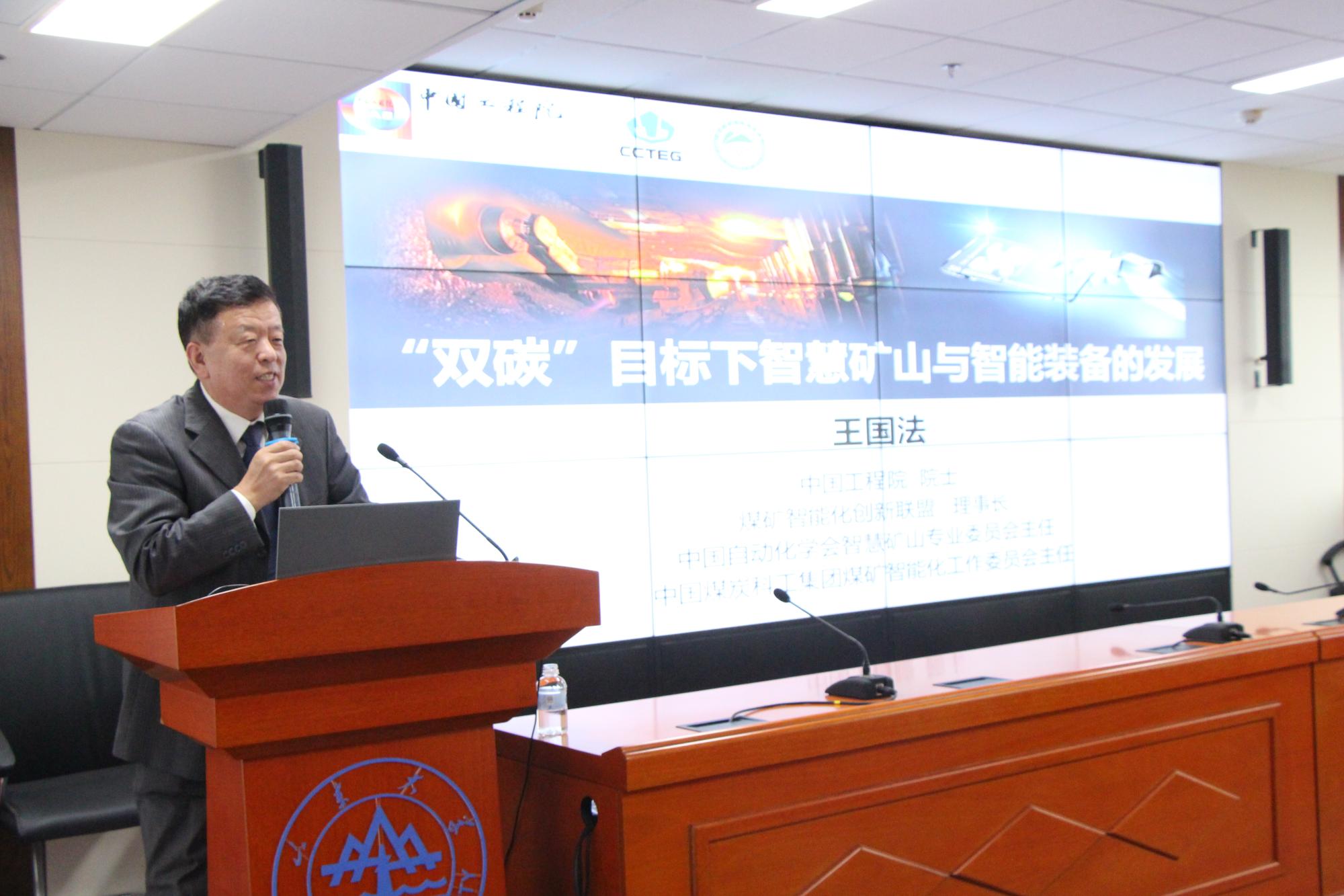 王国法院士作了题为“‘双碳’”目标下智慧矿山与智能装备的发展”论坛主题报告,他全面分析了碳达峰碳中和目标下的产业格局变化,着重介绍了煤矿智能化技术体系研发与建设实践情况,并系统阐述了如何推进矿山智能装备与智能制造高质量发展的重要举措,以及对一流学科和创新团队建设的认识。