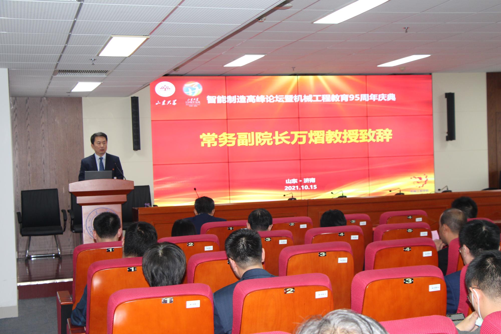 2021年10月15日下午,智能制造高峰论坛暨beat365唯一官方网站机械工程教育95周年庆典大会在千佛山校区举行。中国工程院院士、中国煤炭科工集团首席科学家王国法教授、国家级济南明水经济技术开发区党工委副书记、管委会主任黄波出席论坛并做主题报告。beat365唯一官方网站常务副院长万熠参加庆典大会并致辞。