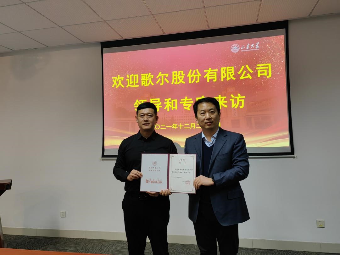 12月29日,歌尔股份有限公司李丰国副总裁一行访问beat365,就研究生和本科人才培养、科研合作、产教融合基地建设等方面进行深入交流,常务副院长万熠等学院领导班子成员及教师代表出席相关活动。