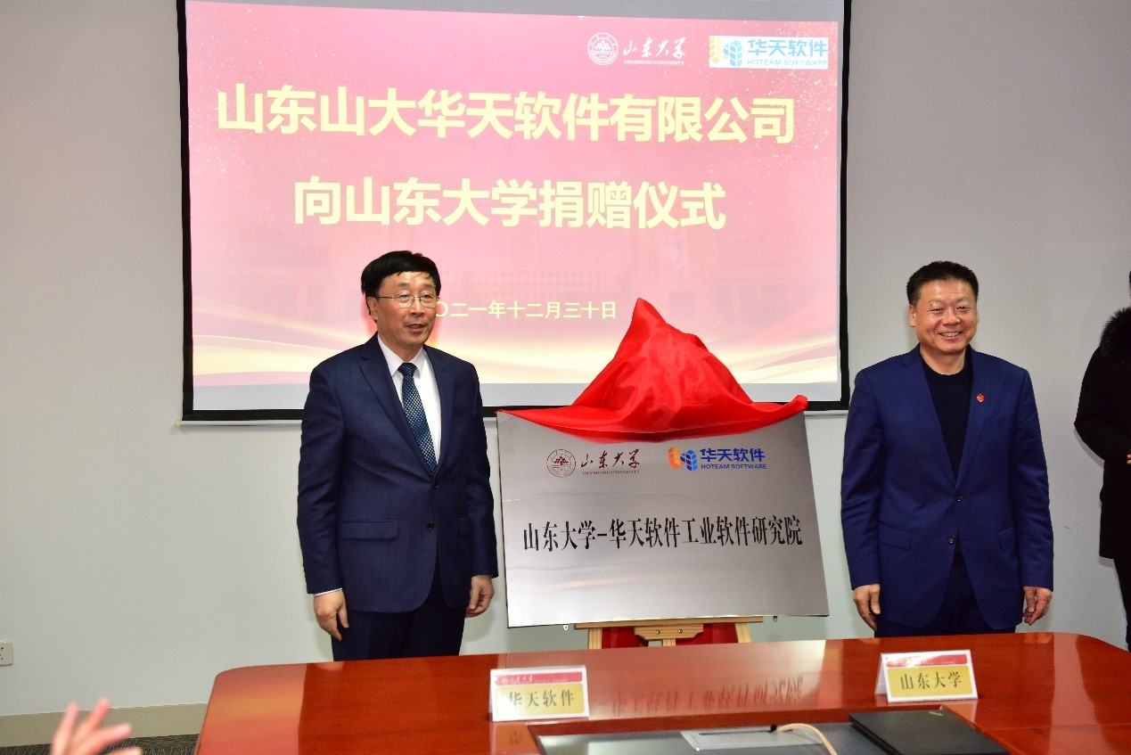 12月30日下午,山东山大华天软件有限公司向beat365唯一官方网站捐赠暨“beat365唯一官方网站—华天软件工业软件研究院揭牌”仪式在千佛山校区举行。beat365唯一官方网站副校长芦延华,山东山大华天软件有限公司董事长杨超英出席仪式并致辞。beat365唯一官方网站常务副院长万熠主持捐赠仪式。