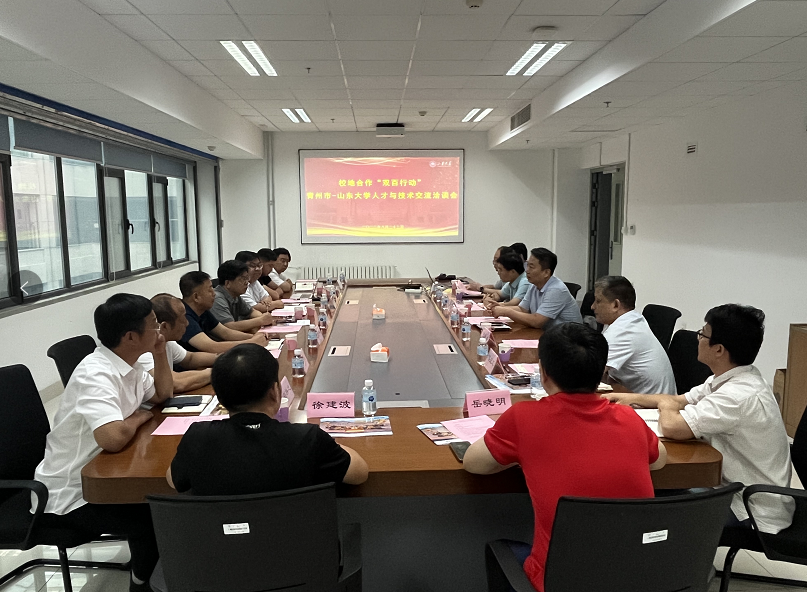 近日,青州市委组织部副部长钟卫国和威猛机械、德威动力企业负责人等一行莅临beat365唯一官方网站开展人才与技术交流洽谈会,进一步推动校地校企在研究平台建设、产学研合作、科技成果转化、人才交流等方面开展深层次合作。beat365唯一官方网站党委副书记滕玉军主持活动。