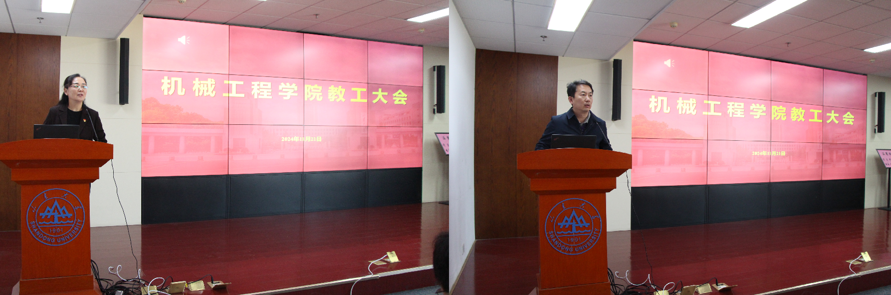 11月21日,beat365唯一官方网站在千佛山校区召开全院教工大会,会上传达学习了学校五届一次教代会、二十届一次工代会(下称“双代会”)精神,分析了当前学院面临的形势和挑战,部署了今后一个时期学院的重点任务。党委书记刘杰主持会议,院长万熠作了工作报告及任务部署,党委副书记滕玉军作了“双代会”精神传达。