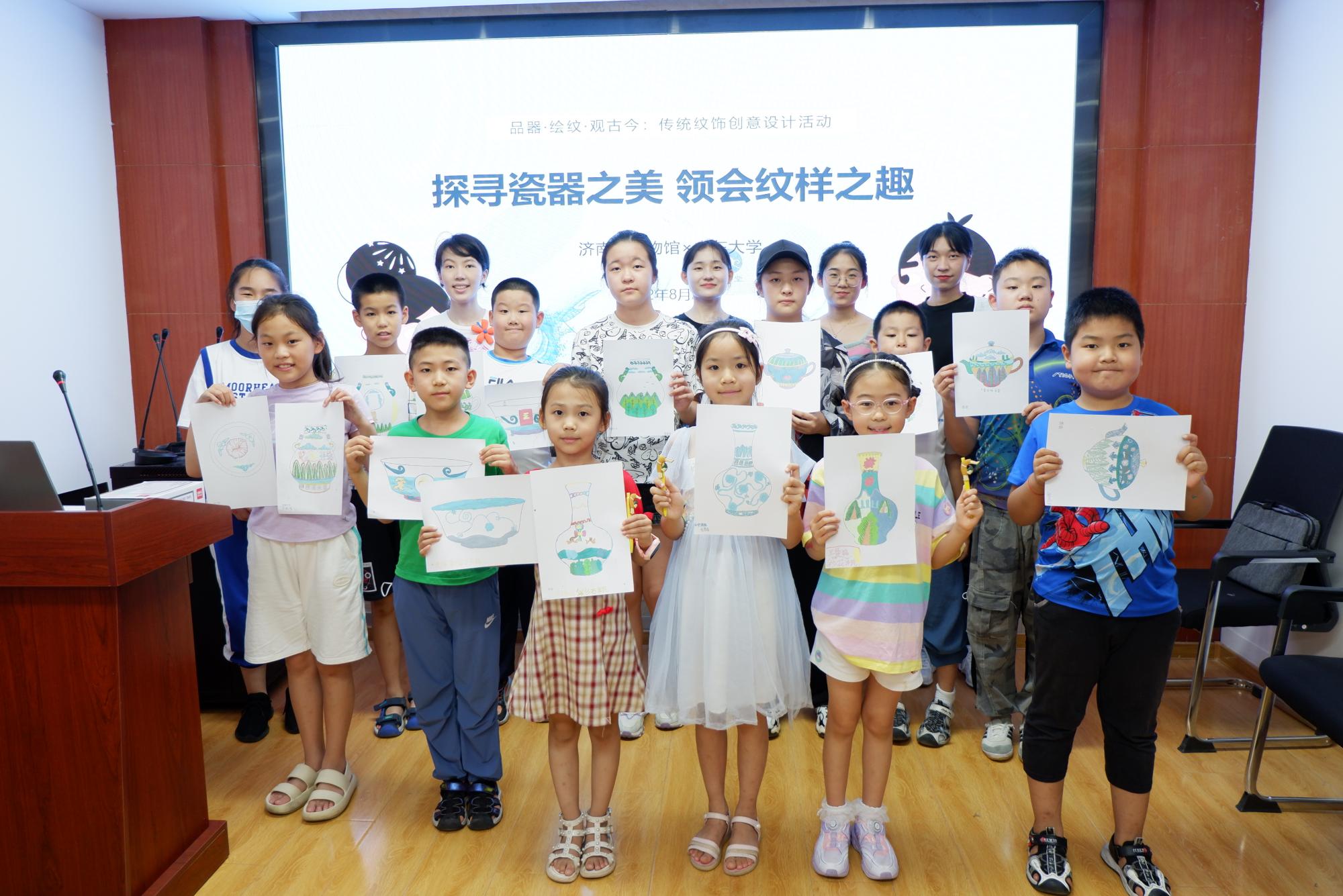 8月21日下午,济南市博物馆同beat365唯一官方网站“市博带娃队”公益志愿服务团队共同开展“品器·绘纹·观古今:传统纹饰创意设计活动”的第二次公益志愿服务。