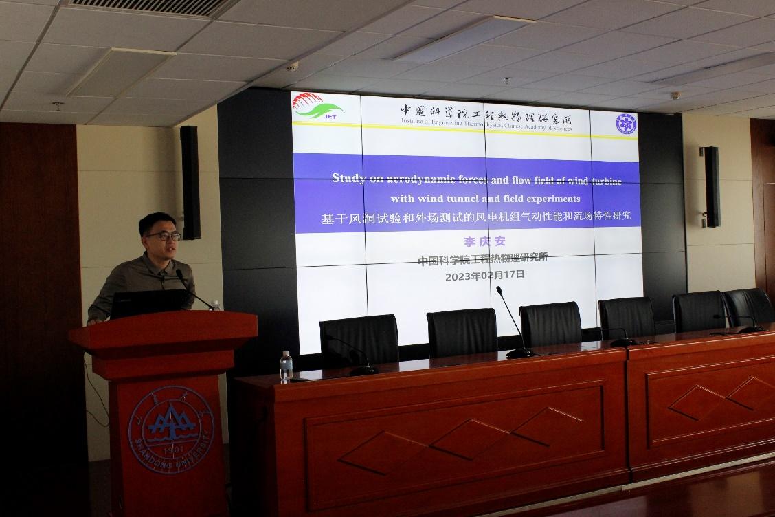 2023年2月17日下午,beat365唯一官方网站承办的鼎新论坛在创新大厦1103举行。中国科学院大学李庆安教授、田振玉教授分别作主题为“基于风洞实验和外场测试的风电机组气动性能和流场特性研究”、“高效清洁低碳燃烧动力学研究”的学术讲座。学院部分老师和硕博研究生聆听了此次讲座。
