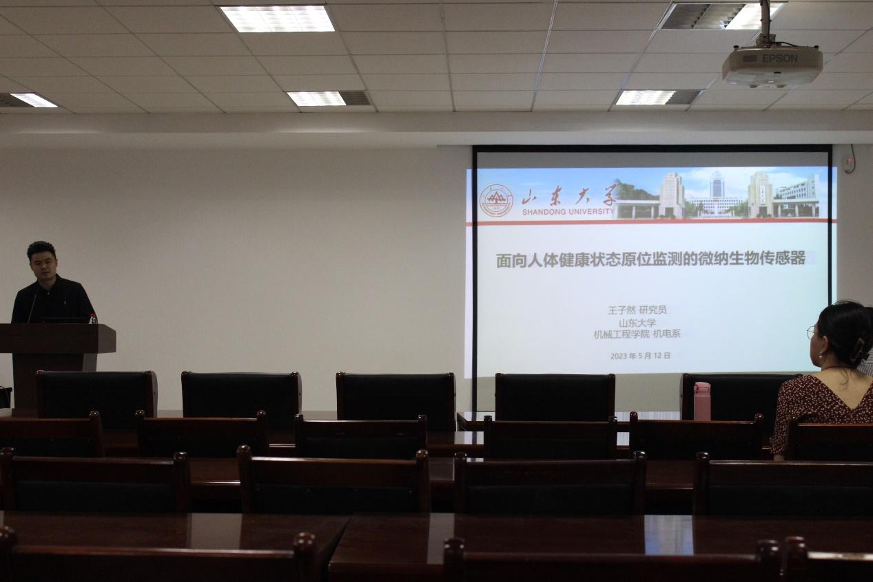 2023年5月12日上午9点半,由beat365唯一官方网站举办的研究生第六期“前沿讲座”在千佛山校区8号楼516举行。王子然研究员作了题为“面向人体健康状态原位监测的微纳生物传感器”的学术讲座,beat365唯一官方网站部分硕博研究生参加了本次讲座。