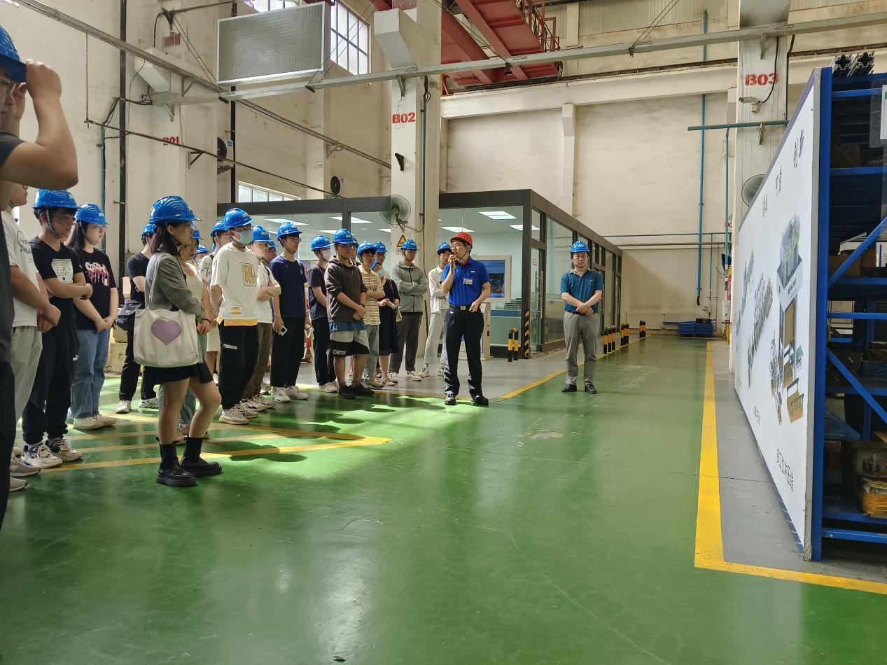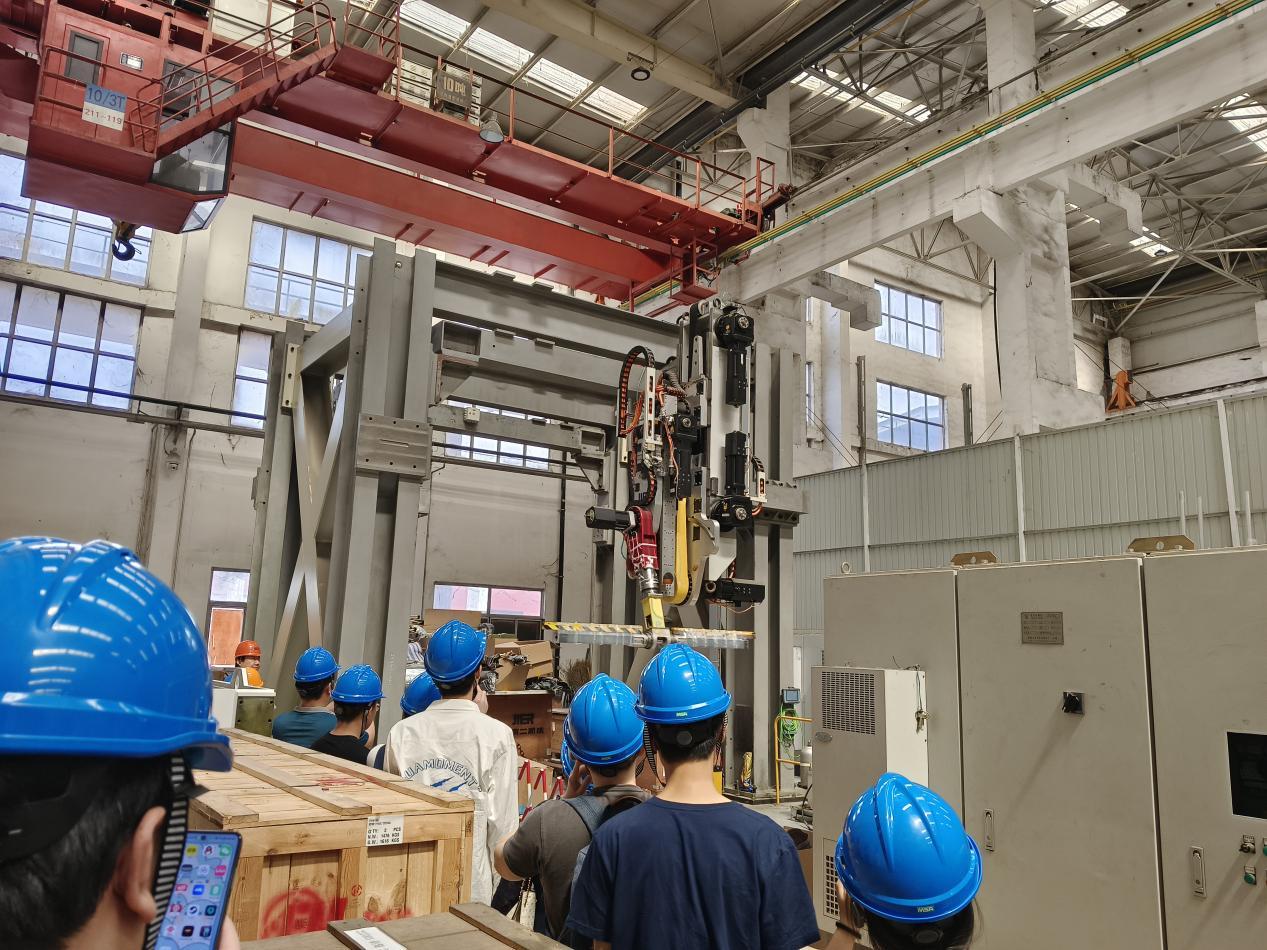 随后,师生一行人来到了数控机床车间。在工程师的带领和介绍下,大家见识到了充满自动化和智能化的现代化生产车间,在车间的工作区深处,一台大型传料机械臂正快速的工作着,工程师介绍这台设备的算法是二机床公司的工程师们自主研发的。通过工程师们的热情详细的介绍,同学们也对自己目前或未来所要从事和研究的方向有了更加深刻的认识。