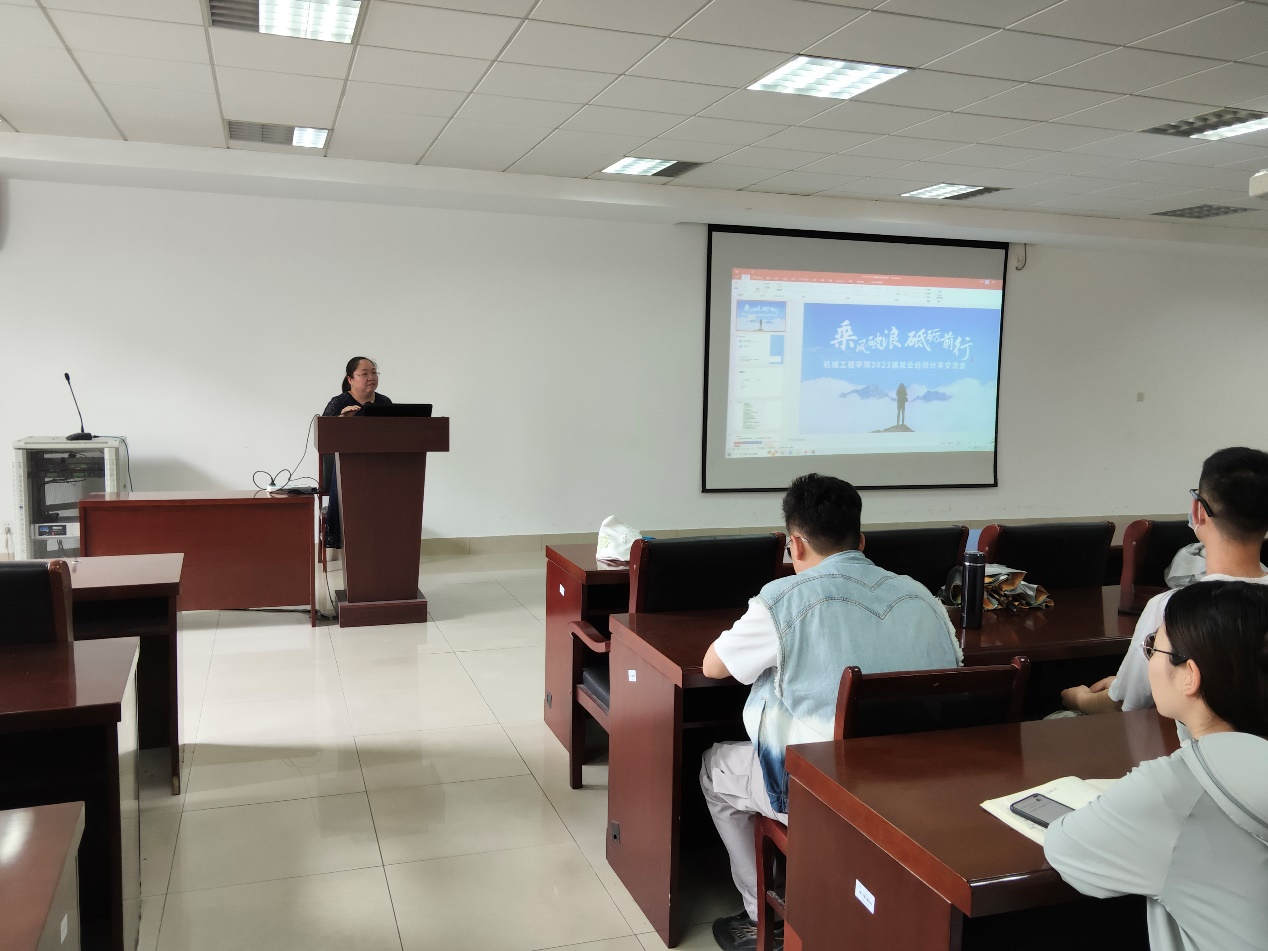 辅导员宋小霞首先介绍了2023届就业形势以及学院毕业生的就业去向和地域分布,指出研究生要立足专业,结合自身实际,提前做好自我发展规划,不断完善自己。
