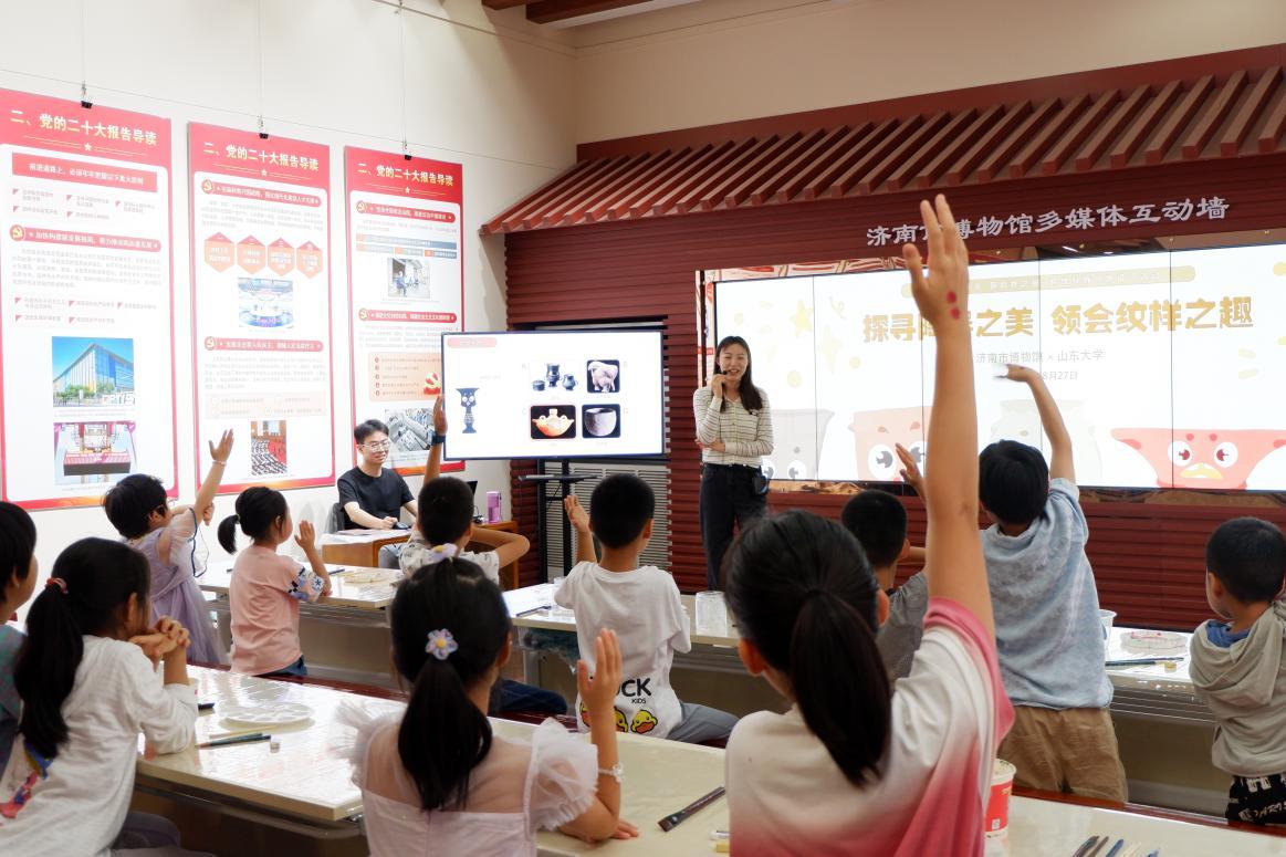 近日,由beat365唯一官方网站beat365唯一官方网站22级设计学团队与济南市博物馆社教部联合举办的“浮沉千年·探纹样之秘:传统纹饰创意设计活动”在欢声笑语中圆满结束。活动以其独特的教育形式和深远的意义,为参与的青少年带来了一次别开生面的文化体验。
