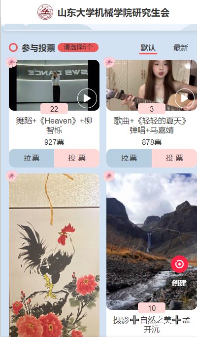 正值青春,“艺”展风采。机械学子们通过歌曲、舞蹈、朗诵、绘画以及摄影等形式积极参与比赛,用作品记录自己的所思所悟。周心仪同学的绘画作品《百“佳”争鸣,机缘山大》和《八方来“才”,邂逅齐鲁》、孟开沅同学的摄影作品《自然之美》、曲佳宁同学的书法作品等体现出同学们对学校、故乡和祖国怀揣着深厚的情感。