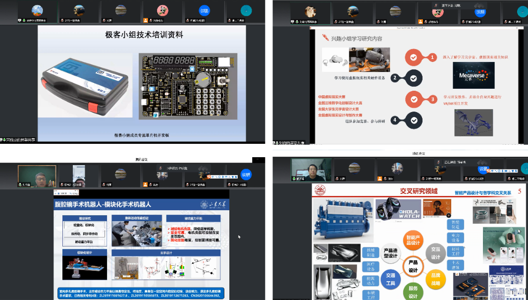 加盟“Cool ME”平台的团队中,有些团队前期已开展了相应的工作。如“极客小组”已开发了自主产权的开发板,“机器人总动员”已研发出了第二代模块化机器人。有些团队与相关企业开展了合作,如“最强大脑”与华天软件合作,致力于自主工业软件的学习与推广,“天演之道”与安世亚太合作专研工业仿真技术。有些团队则具有鲜明的专业方向特色,如“天工开物”、“炫动”是典型的“艺工交叉”特色团队,意图通过学生的作品充分展现“机械美学”的魅力,“我爱飞翔”和“蚂蚁搬家”则是以无人机、AGV群控为技术亮点。